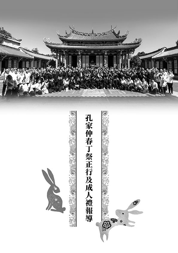 以往配合現今需求所做的禮儀調整,悉數保留。如序班以家長字輩為準,闔家站於同列;拜禮則遵孔德成先生所考禮容為準,以「再拜稽首」為最慎重之大禮;自《論語》中摘出三句做為家訓由全體宗親後裔齊誦;每位宗親後裔在宗主監臨觀禮下,入殿於祖先神位前發心立願等等。至於所有活動的節目單、禮儀示範,乃至於成人禮學子的自我介紹,則亦在活動前放上雲端網路供宗親後裔參考。今年除宗親後裔訂作同一款式服裝,做為禮服外。又參考學者專家意見,於典禮開始之前,由奉祀官與陪祭宗親代表至崇聖祠向孔子五代先祖致祭,以符「父先於子食」的禮意。雖然因活動時程設計,致使同一時間正在序班的宗親後裔們未克參加。但明年應會略加調整,好讓所有人員能更深刻了解崇聖祠設立旨意。