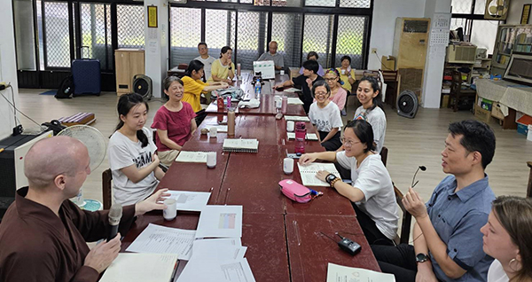 過去沒有上過法華經,這次印象較深刻的是法華七喻。「開三顯一」也正好結合《菩薩戒》和道次第的概念。這次也在這門課參與了翻譯工作,和去年的《小止觀》不同,這次完全採取同步翻譯的方式,難度加深了很多。加上過去沒有上過《法華經》,和外國學生都一樣第一次聽,要即時把老師宣講的法義翻譯出來是全新的挑戰。我跟弟弟兩個人以接力的方式分攤難度,眼看戴老師則是一人從早上到下午負責所有《菩薩戒》的內容,打從心底的感到佩服。我們這組的研討也有別其他組,開放外國學生問任何跟佛法與生活有關的疑問。其中也遇到幾題是自己曾經困擾或思考過的,在試著回答的同時彷彿又再一次正式的回答自己。不求回報,只求當下的交流,以滅法相續的方式在彼此生命中發揮作用。